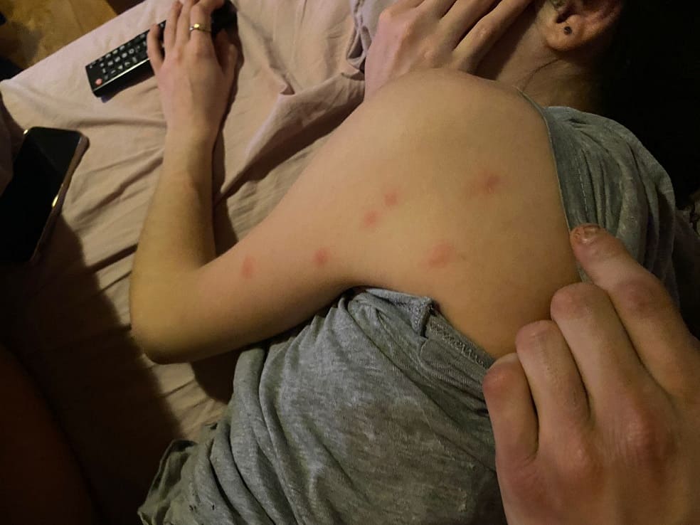 - Picaduras en línea o agrupadas, generalmente en áreas expuestas durante el sueño